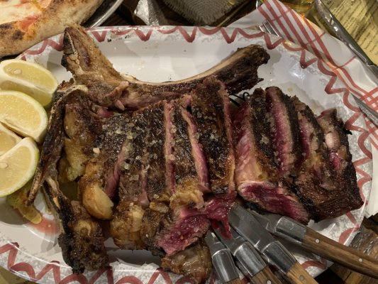 In Pescara, we were passing through, walking along the deserted central streets, we noticed a restaurant in which there was a full boarding. Curiosity got ... Көбірек In Pescara, we were passing through, walking along the deserted central streets, we noticed a restaurant in which there was a full boarding. Curiosity got the better of us and we decided to visit it. We managed to book a table for 9 o'clock. Ordered pizza, arrosticini and steak. Everything was incredibly delicious. Pizza and meat were cooked on coals. A very worthy restaurant, unfortunately, there are few of them in Italy.