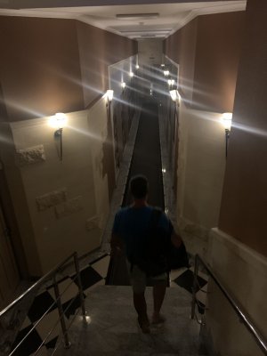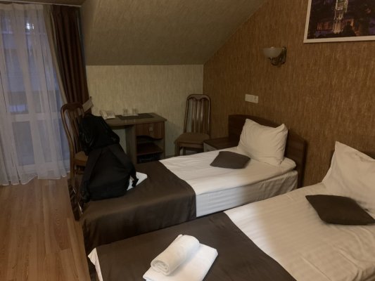 Номер тримісний коштував 700 грн, знаходився на останньому поверсі. Двері наче з картону, шумопоглинання - 0… кожен раз як хтось проходив повз наш номер, здавалося, що двері зараз вилетять.
