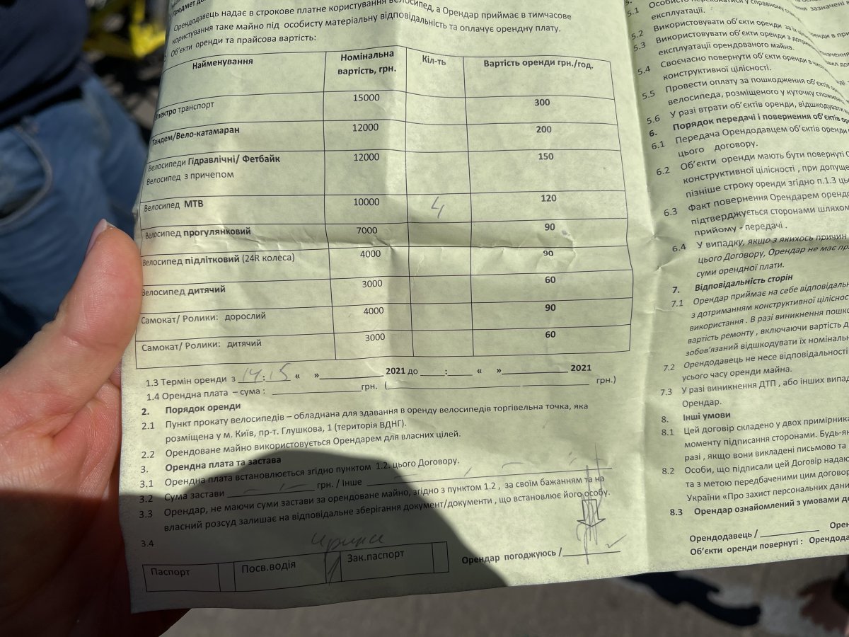 Стоимость аренды - 120 грн/час (можно рассчитаться терминалом), но будьте готовы к тому, что обязательно нужно оставлять паспорт или права в залог.