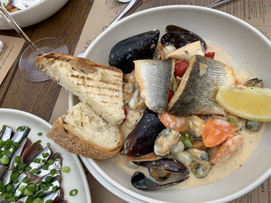 Все блюда, на очень высоком уровне. Мой завтрак в Одессе всегда только YUG. Рекомендую рапаны и рыбное мезе в сливочном соусе.