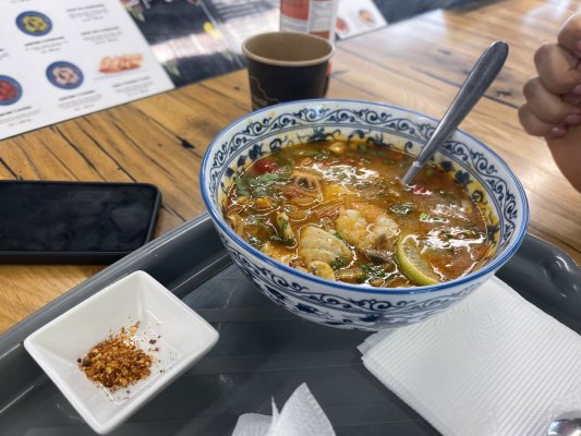 Ресторан Ramyunbaby вразив своїм супом том ям. Бульйон був насиченим, ароматним і пікантним, з ідеально ... Көбірек Ресторан Ramyunbaby вразив своїм супом том ям. Бульйон був насиченим, ароматним і пікантним, з ідеально збалансованим кисло-солодким смаком. Поєднання спецій і свіжих інгредієнтів робило кожен ковток справжнім задоволенням. Безумовно, це одне з найкращих місць, де можна скуштувати том ям.